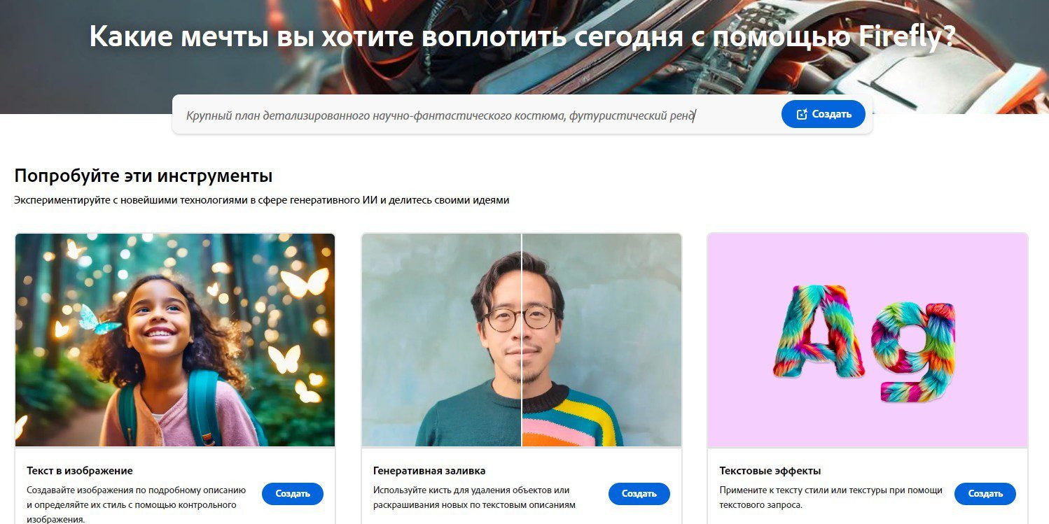Этот инструмент доступен как отдельное веб-приложение на firefly.adobe.com и улучшает творческие процессы с помощью генеративного искусственного интеллекта, подходящего для коммерческого использования. Firefly предлагает функции, такие как добавление или удаление объектов с изображений, изменение фона, перекрашивание векторных график, поиск вдохновения в галереях, сохранение в библиотеках Creative Cloud, и многое другое. Этот инструмент является развитием технологий Adobe, разработанных за последние 40 лет, и цель его разработки — помочь пользователям реализовывать свои идеи, как они их воображают.