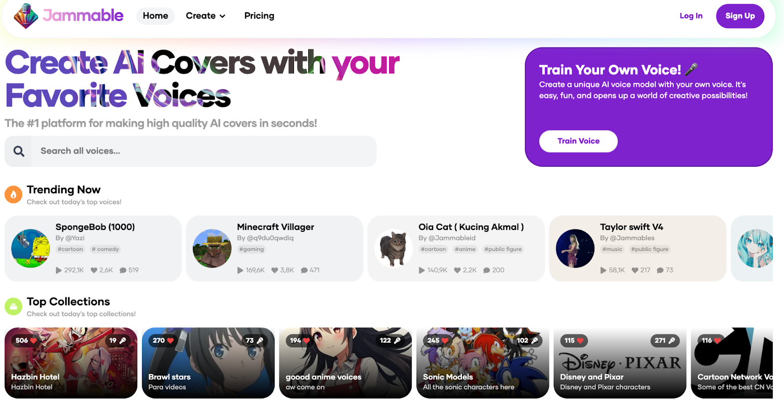 Jammable (в девичестве Voicify AI) — это маст-хэв инструмент для тех, кто плотно сидит на видео-трафике в TikTok, Reels и Shorts. Если вам приелись стандартные робо-голоса, которые модерация FB и Google щелкает на раз-два, этот сервис перевернет ваш подход к крео. Суть проста: вы берете любой аудиоисходник или ссылку с YouTube и за пару кликов накладываете на него голос известного артиста, политика или мемного персонажа.