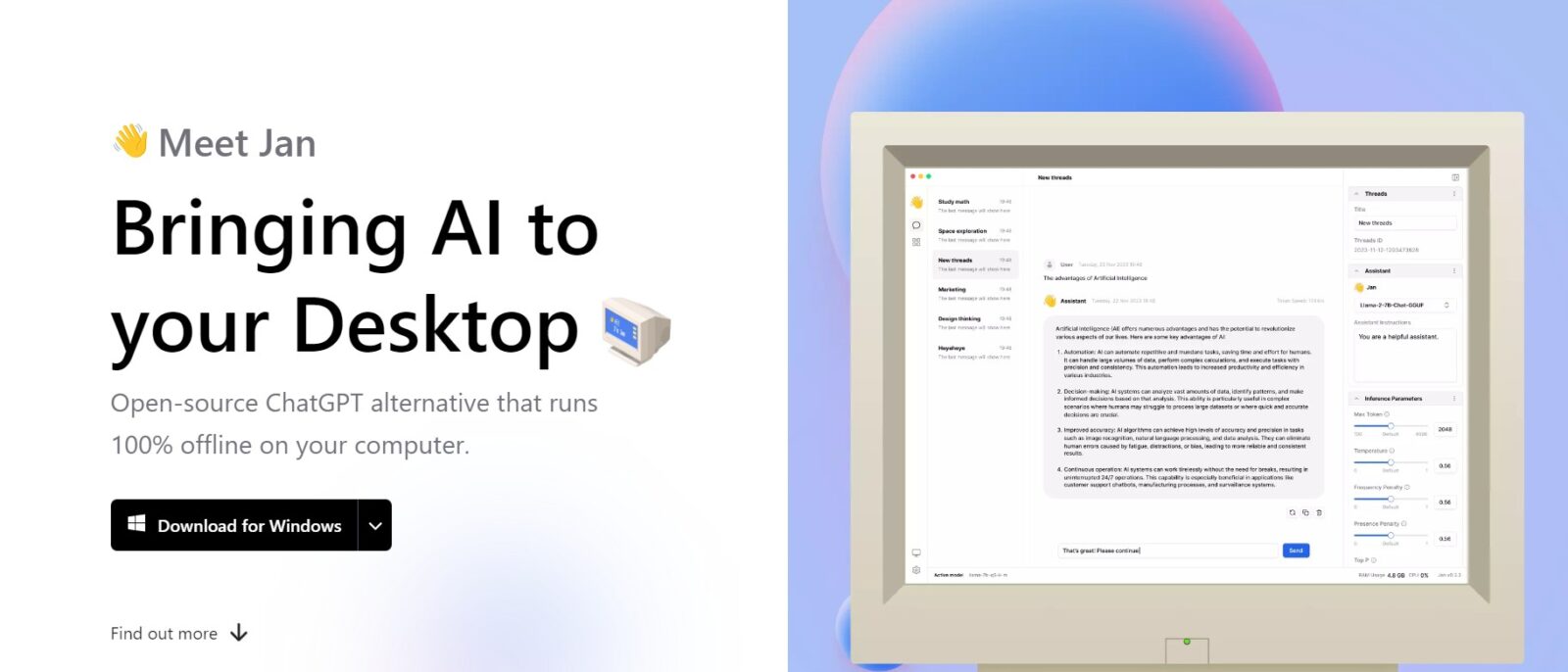 Jan AI — это инновационная платформа, стремящаяся создать открытую экосистему искусственного интеллекта. Она фокусируется на разработке инфраструктуры и инструментов, чтобы обеспечить конкурентоспособность открытых искусственных интеллектов наравне с закрытыми проприетарными системами. Основная цель Jan AI — создать когнитивную основу для будущих роботов, которые будут полезными помощниками для людей и бизнесов в повседневной жизни. Jan AI стремится дать возможность пользователям владеть своим искусственным интеллектом, имея право на настройку, ремонт и инновации.
