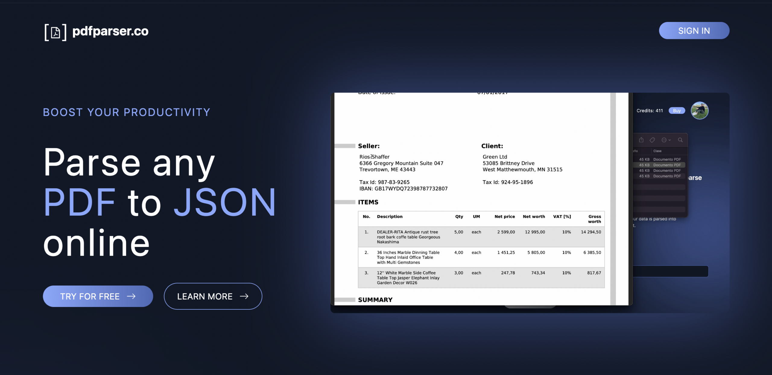 Давайте честно: копипастить данные из PDF-отчетов, банковских условий или каталогов офферов — это ад, который сжирает время вашего фармера или контент-менеджера. PDF Parser автоматизирует этот процесс. Это облачное решение, которое «проглатывает» документ любой сложности и выдает на выходе чистый JSON-формат. Это значит, что данные можно сразу скармливать вашим скриптам, сайтам или нейросетям для генерации контента.