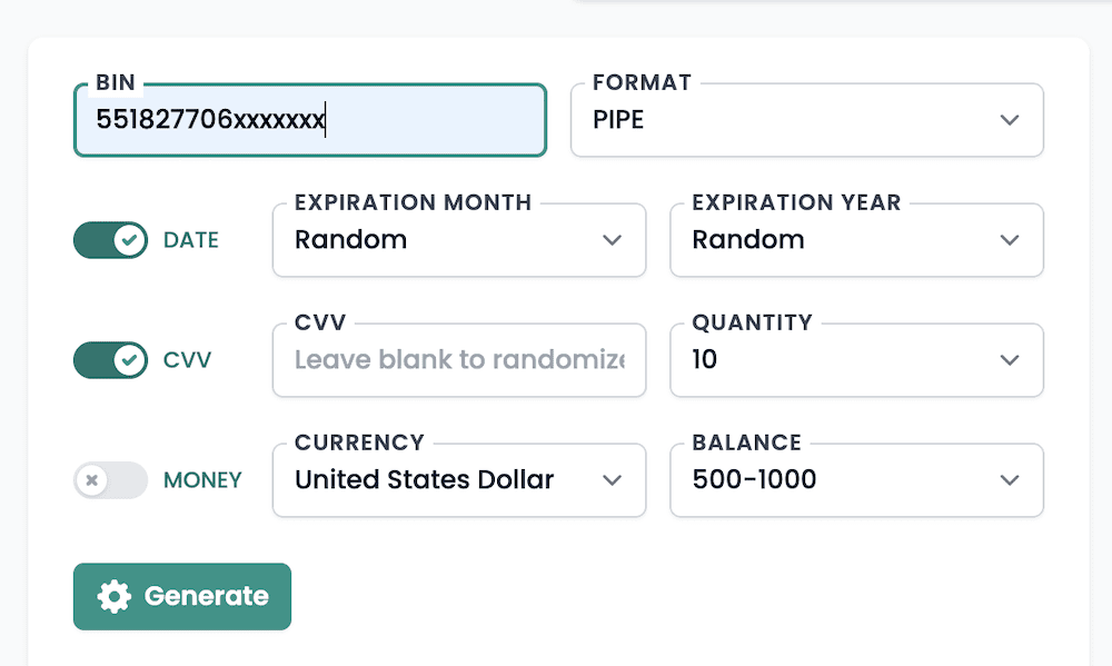 - Генератор виртуальных карт. Это онлайн‑сервис, который формирует тестовые номера карт. Они не связаны с реальными банковскими счетами, но отлично подходят для активации подписки. В качестве примера можно воспользоваться Namso-gen.com.