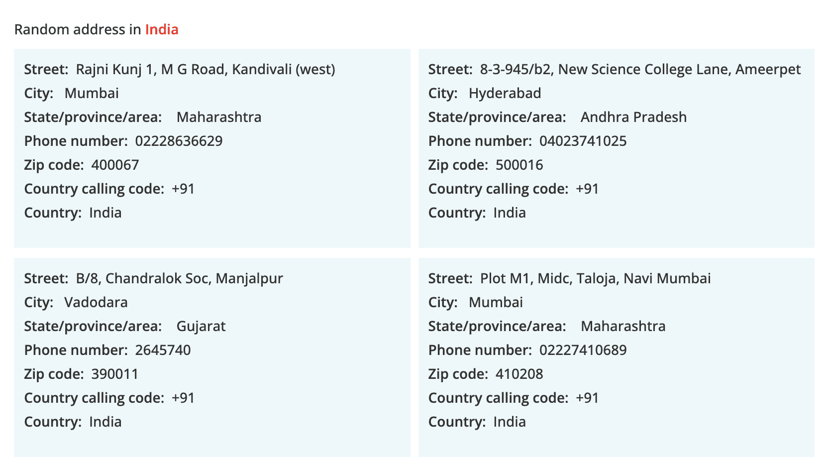 Получаем случайный адрес в Индии