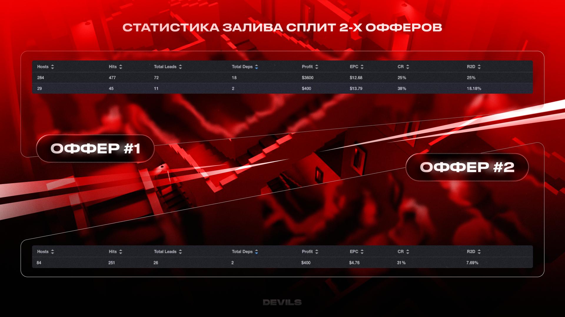Оффер 1 дал живой конверт с первых дней, что стало основой для дальнейшей работы.
