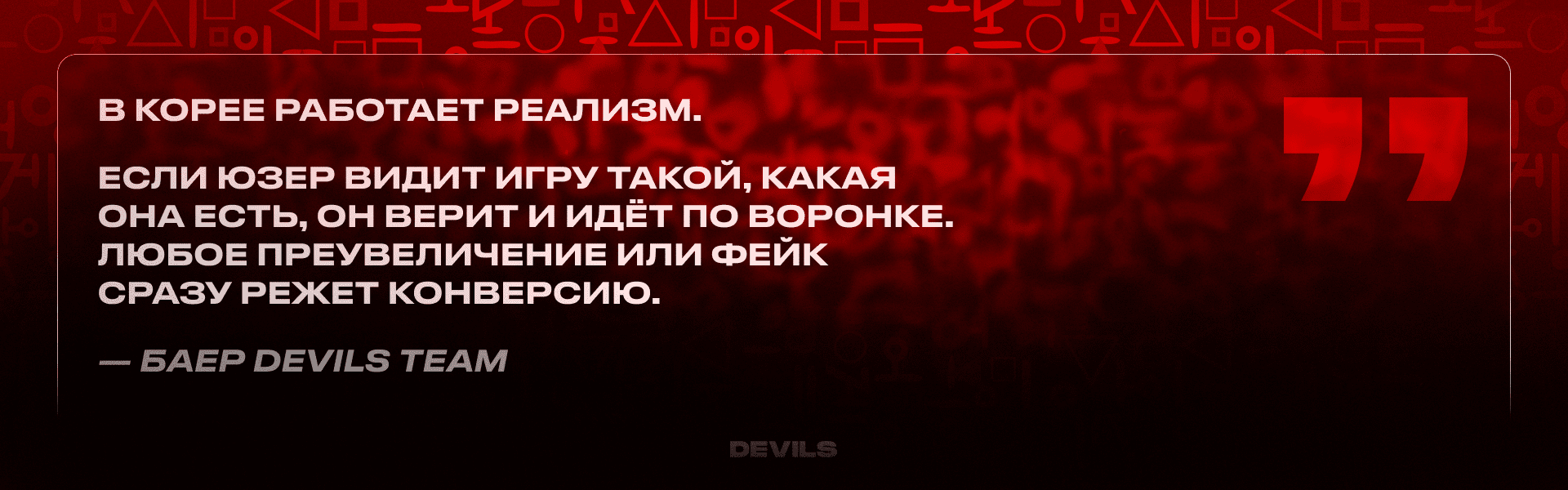 В КР сериал знает каждый, мемы и образы из «Игры в кальмара» до сих пор живут в соцсетях, для юзера это сразу считывается как «свой» контент: знакомый сеттинг вызывает доверие, повышает CTR и удерживает внимание дольше, чем абстрактные слоты.