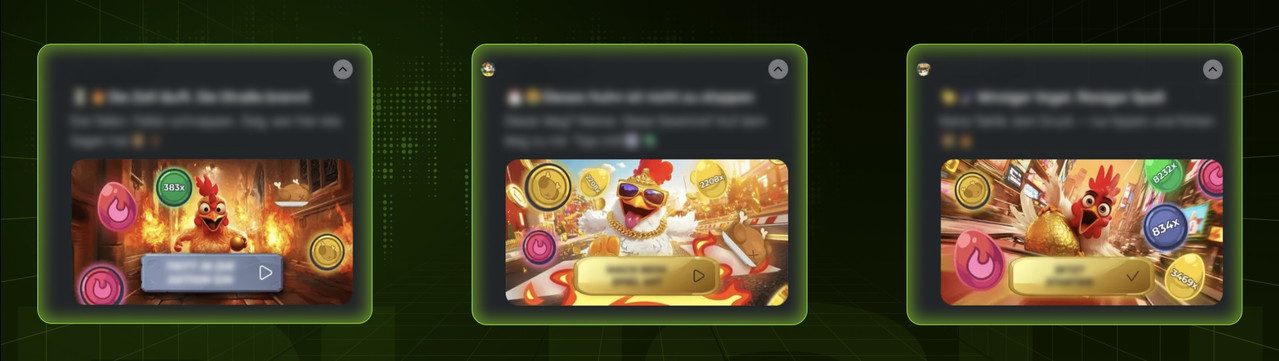 Во-вторых, важно учитывать, что еще год назад креативы с Chicken Road были свежим трендом в ленте пользователя. И пусть сама тематика уже стала классикой, креативам и CTR от этого лучше не становится. Сегодня нужно искать новые, более цепкие подходы — с сохранением ключевых аспектов: визуала игровой механики, эмоций персонажей и сильного хука.