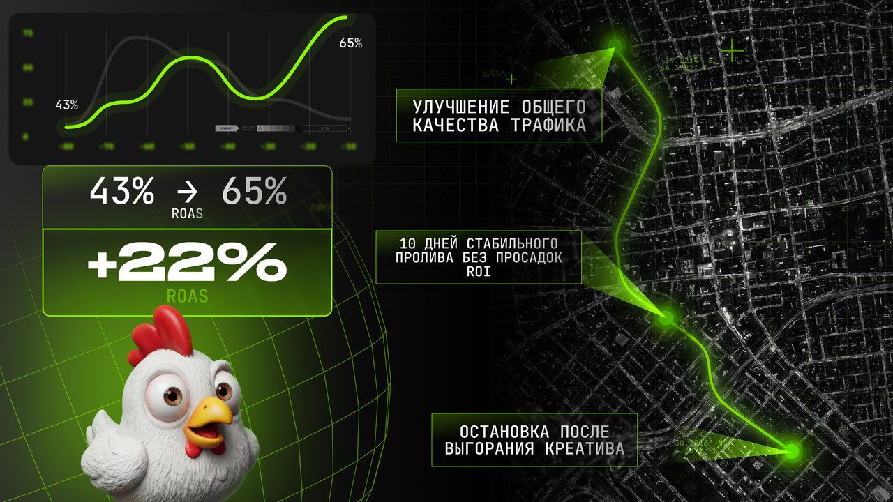 «Да, Chicken Road сейчас один из главных трендов на рынке. Именно поэтому получать из него стабильный профит и высокий ROI становится все сложнее. Конкуренция растет, аукцион перегревается, и многие байеры начинают использовать слот с сильным мотивом, чтобы удешевить кост. Однако вместе со снижением цены проседает не только конверт, но и качество самого трафика.